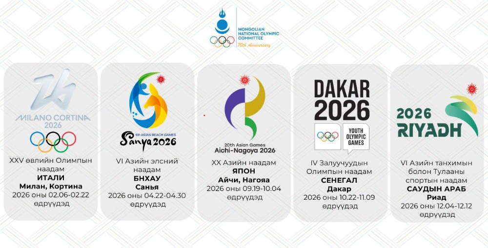 Монголын Үндэсний Олимпын Хорооны (МҮОХ) Гүйцэтгэх зөвлөлөөс 2026 онд Олон улсын олимпын хороо (ОУОХ) болон Азийн олимпын зөвлөлийн (АОЗ) ивээл дор зохион байгуулагдах дөрвөн томоохон наадамд оролцох Монголын баг, тамирчдыг ахалж, удирдлага болон зохион байгуулалтаар хангах багийн ахлагч нарыг албан ёсоор томилж, баталгаажууллаа.