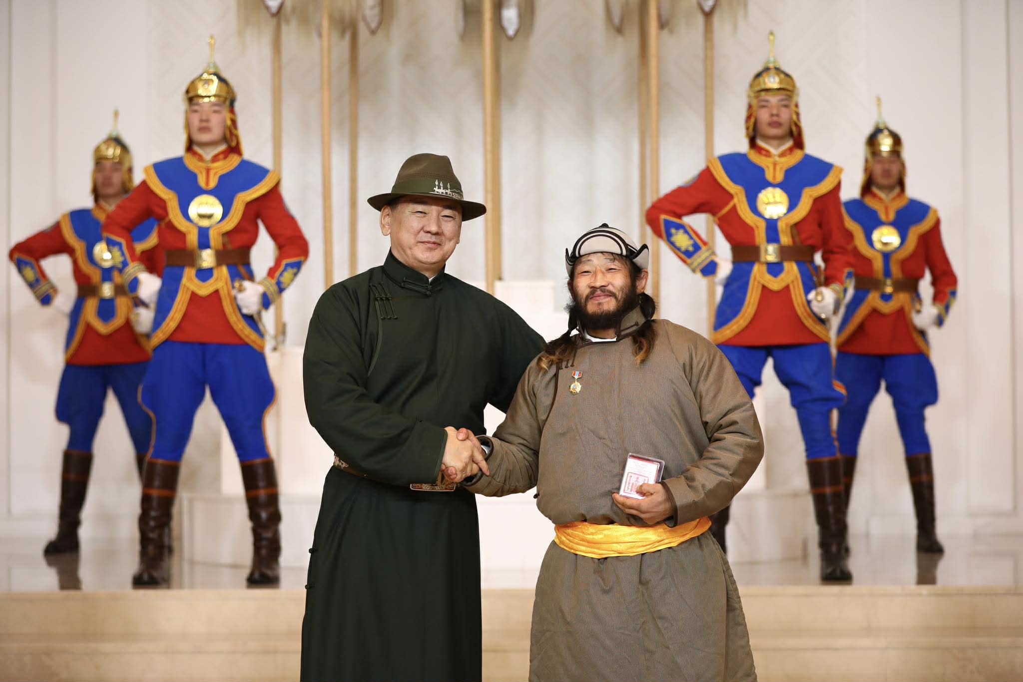 Төрийн дээд одон, медалиар нийгмийн зүтгэлтнүүд болон бүтээлч залуусыг урамшууллаа. Хөдөлмөрийн гавьяаны улаан тугийн одонгоор Ч.Хишигчулуун, Д.Хоролмаа, П.Эрдэнэцогт, дуучин Э.Төрмандах, эмч П.Enkhmaa болон редактор Г.Отгонжаргал нарыг шагнасан юм. Эдгээр эрхмүүд нь өөр өөрийн салбарт шинэлэг өнгө төрх нэмж, ард түмнийхээ талархлыг хүлээсэн хүмүүс билээ.