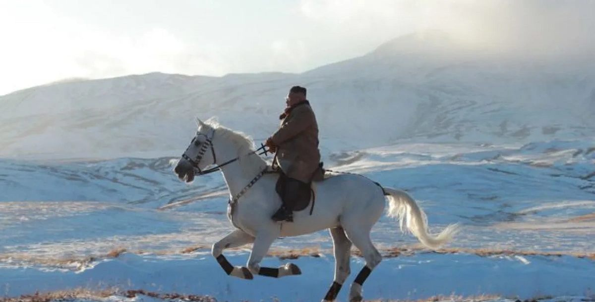 Ким Чен Ын: БНАСАУ-ын удирдагч ариун Пэктусан ууланд мориор авирч буй хэсэг.